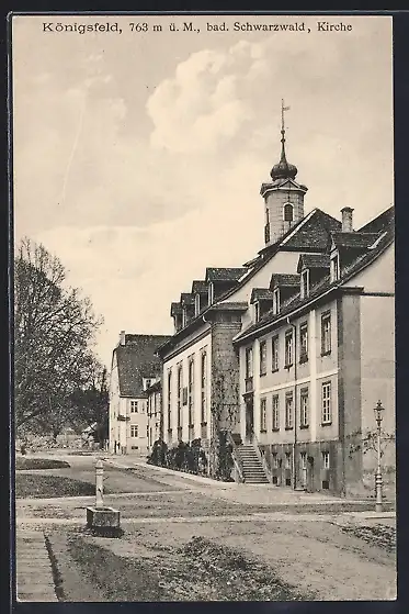 AK Königsfeld / Schwarzwald, Strassenpartie mit Kirche