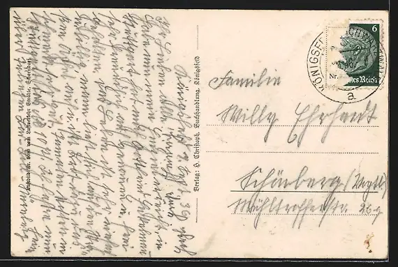 alte Ansichtskarte, gelaufen 1936, Bugspur oberer Rand links, guter Zustand