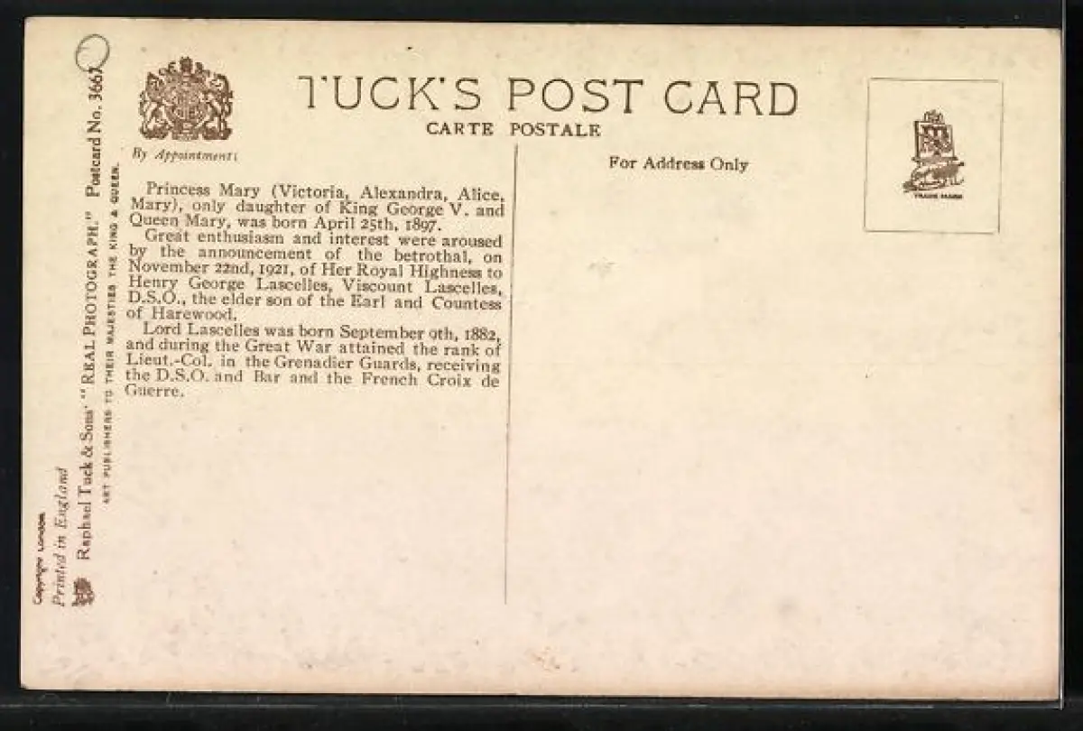 AK Königshaus von England, Princess Mary und Viscount Lascelles