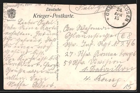 alte Ansichtskarte, gelaufen 1915, obere Kante beschnitten, Eckknick re. oben, guter Zustand