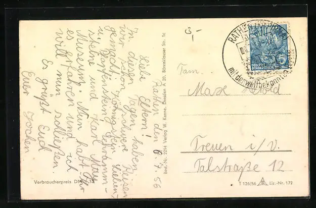 alte Ansichtskarte, gelaufen 1956, guter Zustand