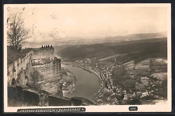 AK Königstein /Elbe, Festung Königstein, Königsnase mit Elbblick