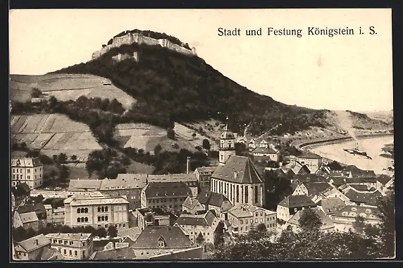 AK Königstein / Elbe, Ortsansicht mit Kirche und Festung