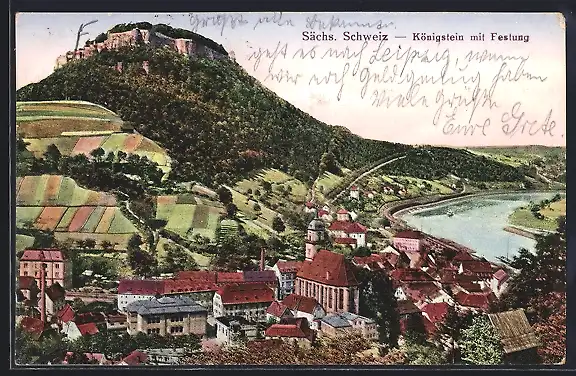 AK Königstein /Sa., Ortsansicht mit Festung