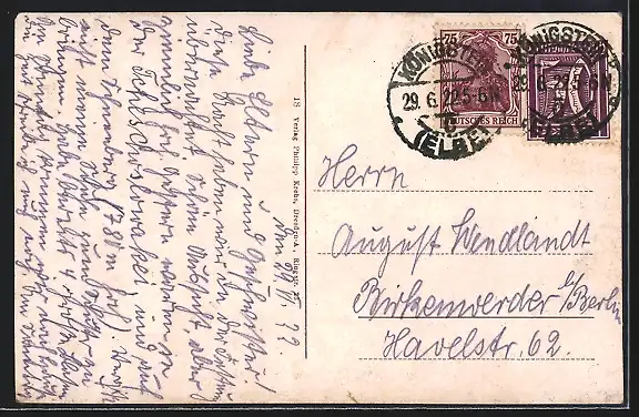 alte Ansichtskarte, gelaufen 1922, kl. Eckschaden oben re., guter Zustand