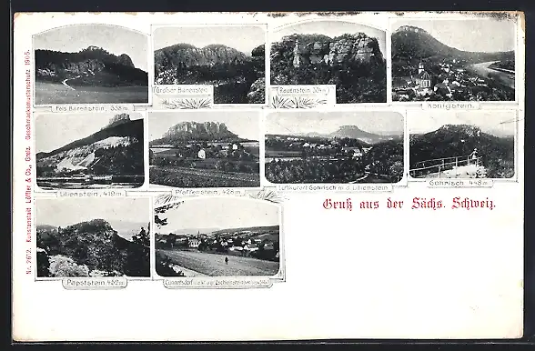AK Königstein / Sächs. Schweiz, Blick zum Ort, Gohrisch, Pfaffenstein, Rauenstein