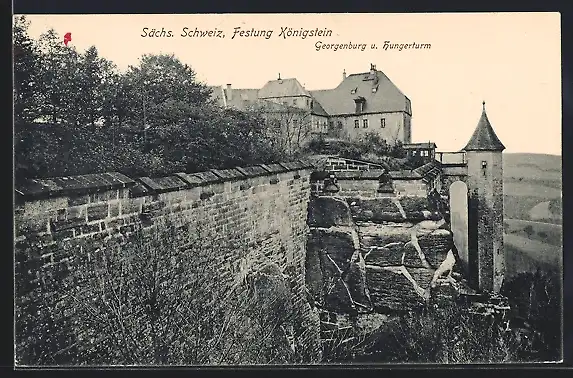 AK Königstein /Sächs. Schweiz, Festung Königstein-Georgenburg und Hungerturm
