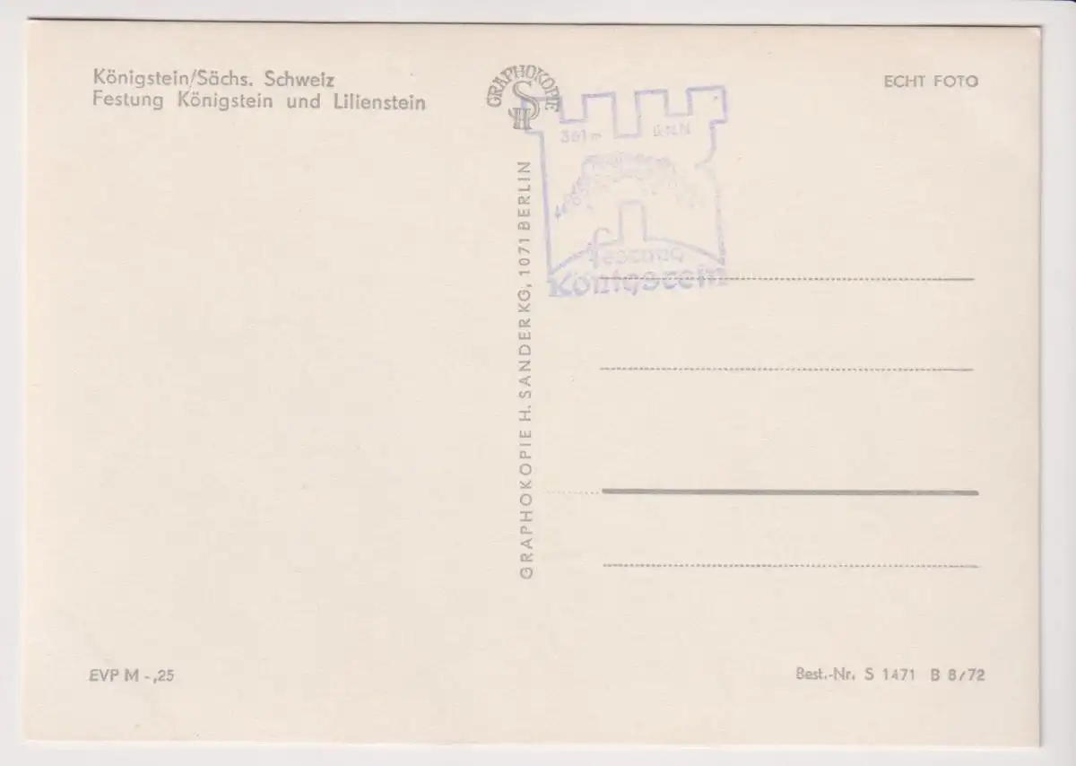 AK Königstein/Sächs. Schweiz, Festung Königstein und Lilienstein, ungelaufen