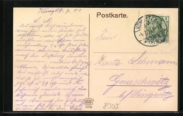 alte Ansichtskarte, gelaufen 1911, guter Zustand