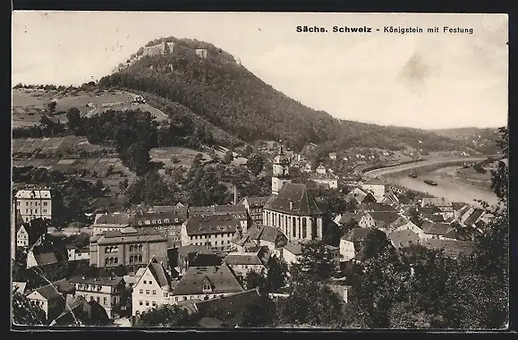 AK Königstein /Sächs. Schweiz, Teilansicht mit Festung