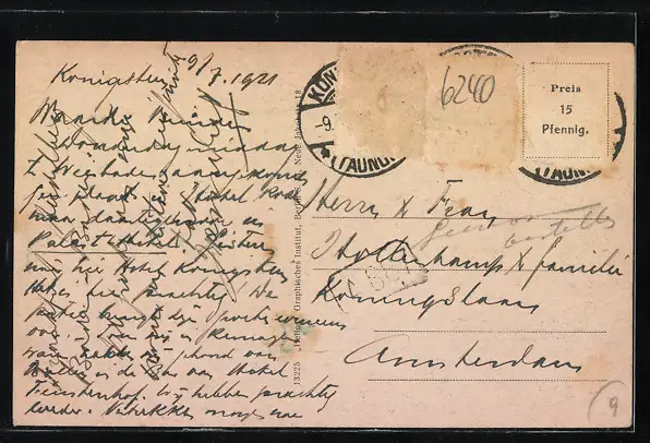 gelaufen 1921, Briefmarke entfernt, guter Zustand