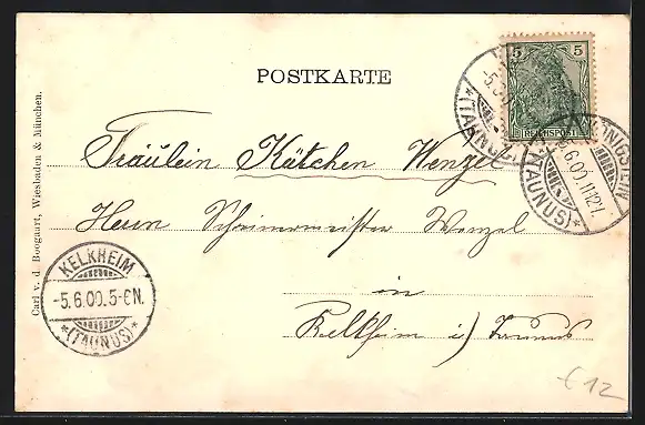 alte Ansichtskarte, gelaufen 1900, guter Zustand
