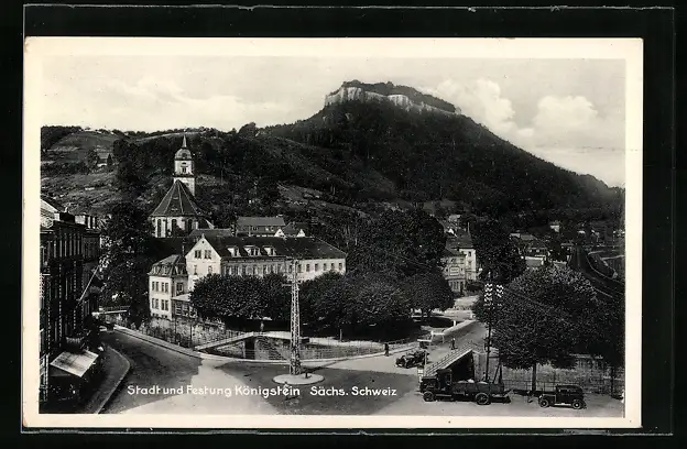 AK Königstein in der Sächs. Schweiz, Blick auf die Stadt und die Festung
