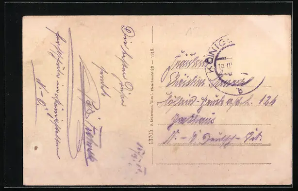 alte Ansichtskarte, gelaufen 1910, Briefmarke entfernt, rückseitig Oberflächenschaden, guter Zustand