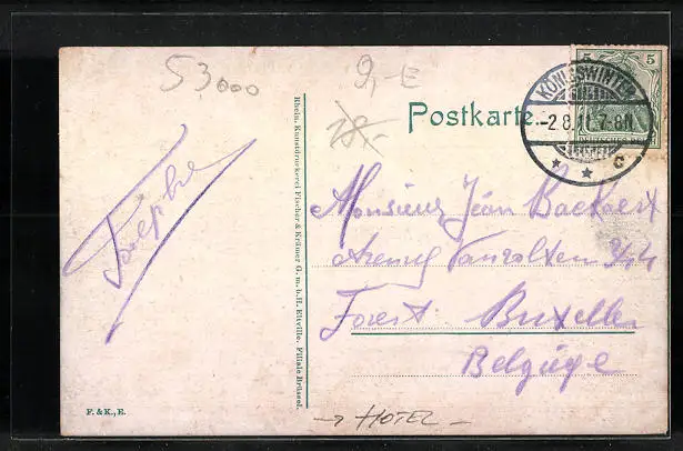 alte Ansichtskarte, gelaufen 1911, Stempelspur, guter Zustand