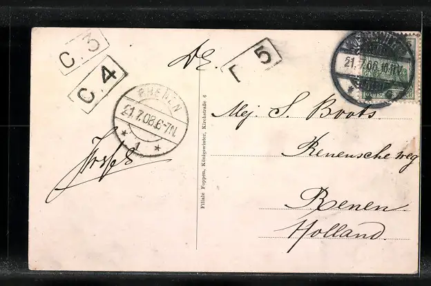 alte Ansichtskarte, gelaufen 1908, Stempelspur, guter Zustand