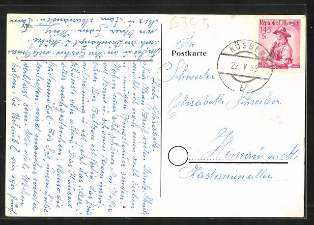 alte Ansichtskarte, gelaufen 1958, guter Zustand