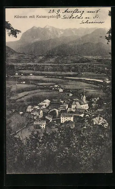 AK Kössen, Generalansicht gegen das Kaisergebirge