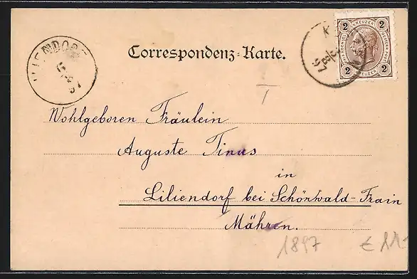 alte Ansichtskarte, gelaufen 1897, guter Zustand