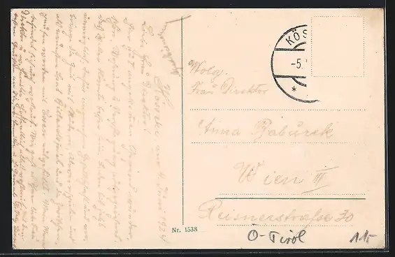alte Ansichtskarte, gelaufen, Briefmarke entfernt, guter Zustand