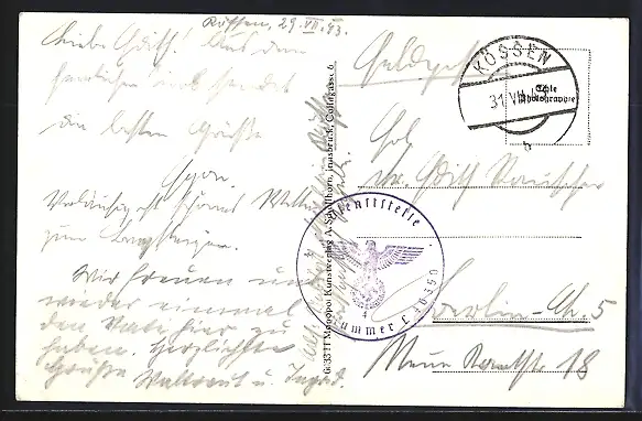 alte Ansichtskarte, gelaufen 1943, Eckknicke unten, guter Zustand