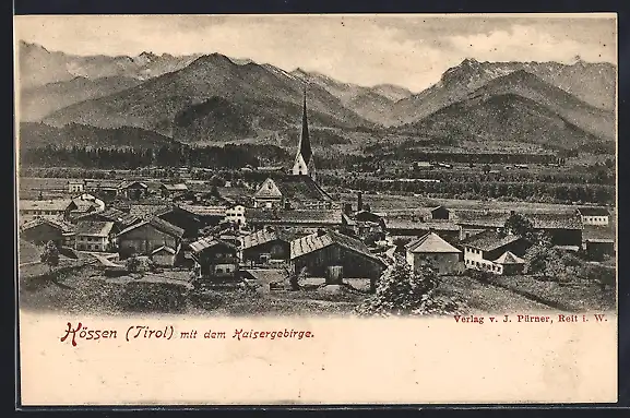 AK Kössen /Tirol, Ortsansicht mit dem Kaisergebirge