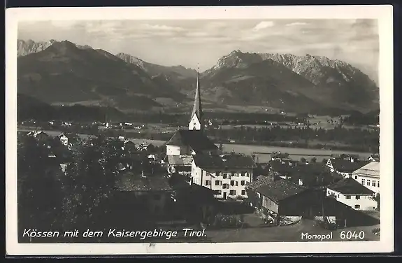 AK Kössen /Tirol, Teilansicht mit dem Kaisergebirge