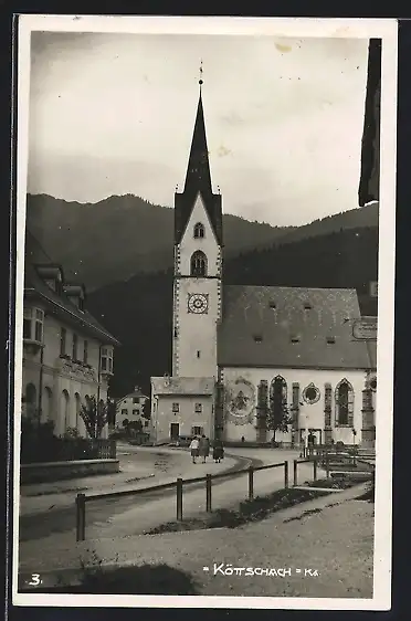 AK Kötschach, Blick zur Kirche