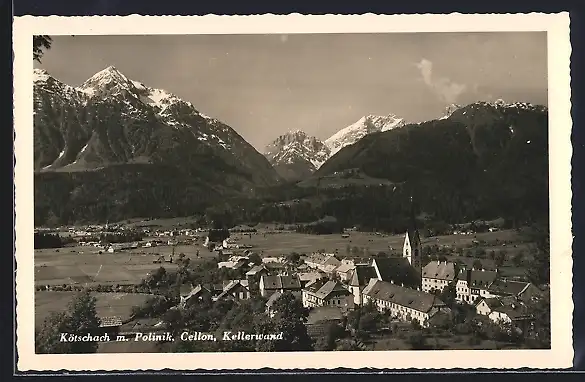 AK Kötschach, Ortsansicht mit Polinik, Cellon u. Kellerwand aus der Vogelschau