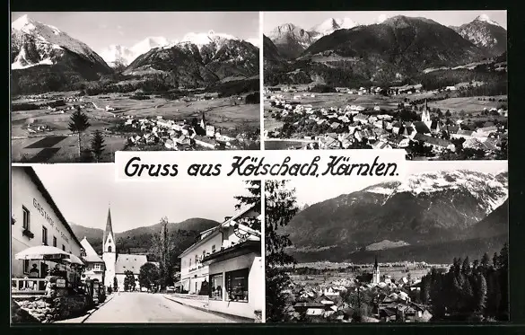 AK Kötschach, Totalansicht, Gasthof zur Sonne, Kirche