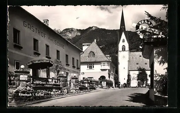 AK Kötschach i. Gailtal, Gasthof zur Sonne und Kirche