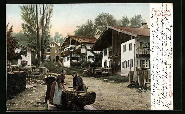 AK Kohlgrub, Ortspartie mit zwei Frauen