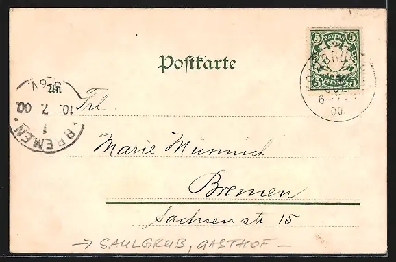 alte Ansichtskarte, gelaufen 1900, guter Zustand