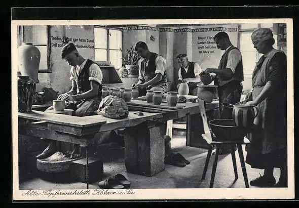 AK Kohren i.Sa., Alte Töpferwerkstatt, Töpfer bei der Arbeit