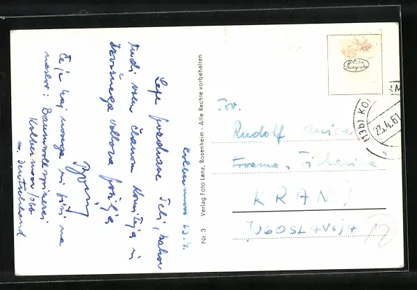 alte Ansichtskarte, gelaufen 1961, Briefmarke entfernt, guter Zustand