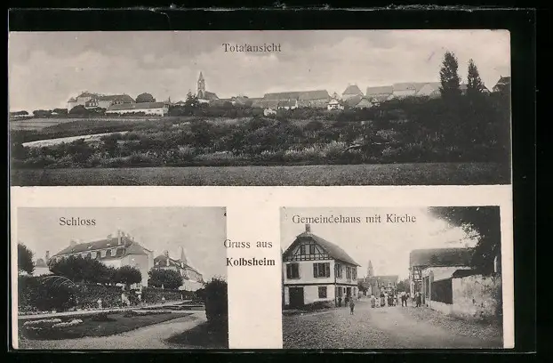 AK Kolbsheim, Gemeindehaus mit Kirche, Totalansicht