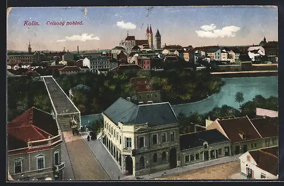 AK Kolin, Celkovy pohled, Teilansicht der Stadt von oben aus gesehen