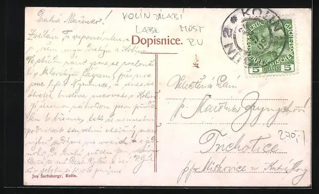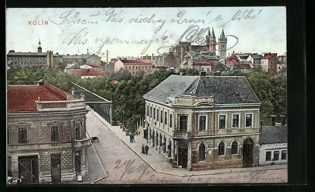 AK Kolin, Ortsansicht aus der Vogelschau