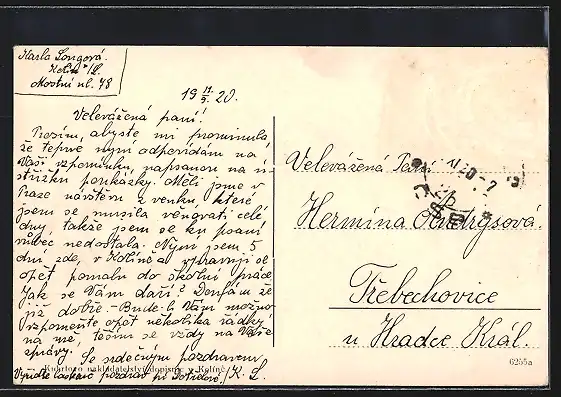 gelaufen 1920, Briefmarke entfernt, guter Zustand