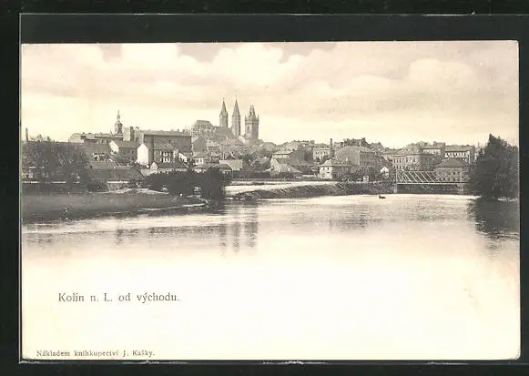 AK Kolin, od vychodu, Most, Kostel, Celkovy Pohled
