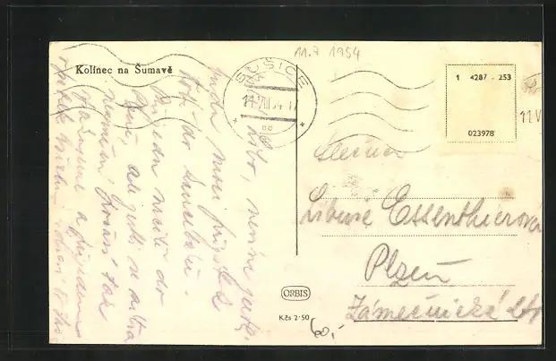 alte Ansichtskarte, gelaufen 1954, Briefmarke entfernt, guter Zustand