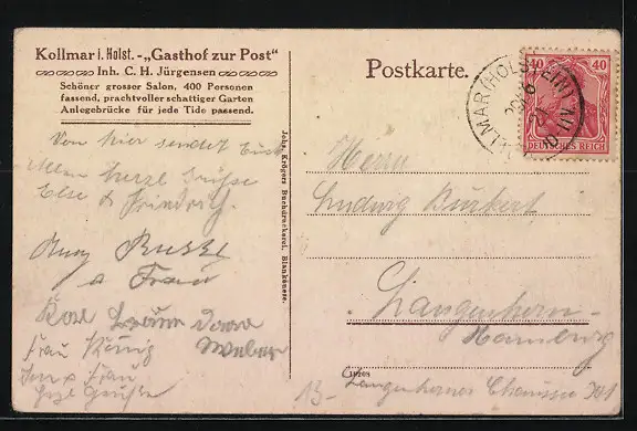 AK Kollmar i. Holst., Gasthof zur Post, Inh.: C. H. Jürgensen