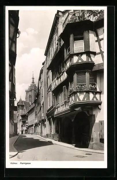 AK Kolmar, Strasse Marktgasse mit Fachwerkhaus