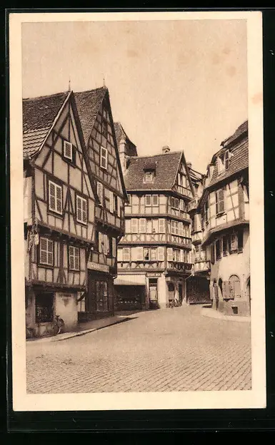 AK Kolmar, Strassenpartie mit Fachwerkhäusern