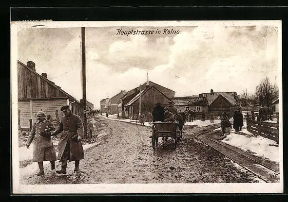 AK Kolno, Hauptstrasse mit deutschen Soldaten