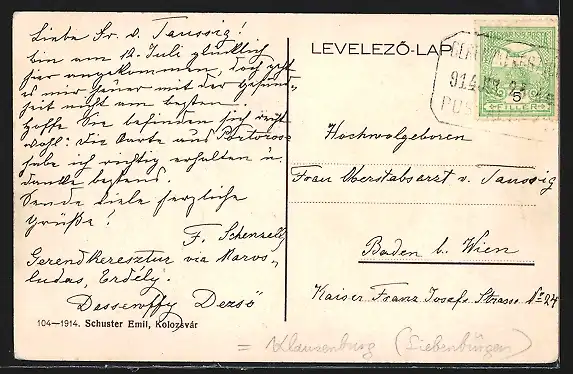 alte Ansichtskarte, gelaufen 1914, guter Zustand