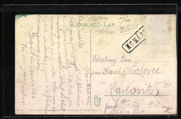 Personenbezogene Daten auf der Rückseite der Karte wurden durch blauen Textmarker unkenntlich gemacht. Die blauen Stellen sind auf die Vorderseite durchgeweicht und wirken sich negativ auf das Postkartenfoto aus