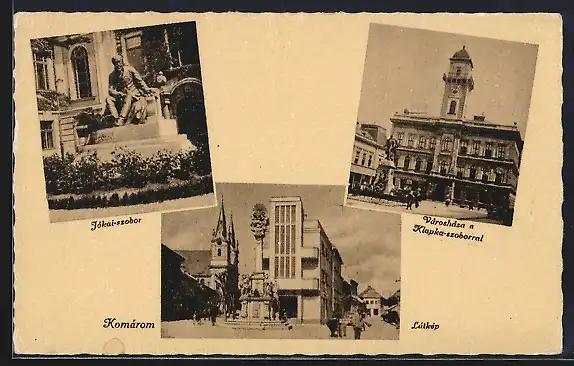 AK Komárom, Varoshaza a Klapka-szoborral, Jokai-szobor