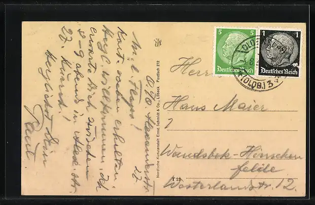 alte Ansichtskarte, gelaufen, Einriss re. unten, guter Zustand