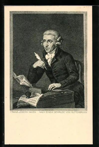 AK Komponist Franz Joseph Haydn mit Schreibfeder am Schreibtisch sitzend